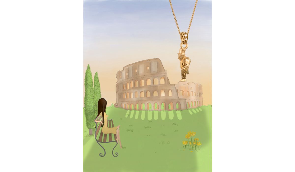 Rue des Mille is an all-Italian story that tells of a ‘family dream’ that became true, thanks to the resourcefulness of Giacomo, Federica and Tommaso Pieroni. In 1985, New Gold, a wholesale gold, jewelry and silverware company founded by Roberto, his wife, Antonella, and brother-in-law, Federico opened at number 99, via dei Mille in La Spezia. The Pieroni siblings have now chosen the name of that street where everything began to celebrate the launch of their first 18-karat gold collection. Via dei Mille – Magico Sogno Italiano (Magic Italian Dream) tells the history of Italy and reinterprets the most folkloristic symbols in a clean and minimal style. A lively and amusing idea, as is the concept and story in the advertising campaign. The young Tuscan company, in collaboration withWhitewall Studio, has made jewelry the leading character of an unusual and poetic story that describes the picturesque Italian panorama through illustrations by Chiara Bartoletta. And so, while a gold charm representing Lady Luck becomes the subject of one of the paintings in the Uffizi Gallery in Florence, a small sun-shaped pendant shines onto the Tower of Pisa and the moon, again in yellow gold, illuminates a romantic night-time gondola ride. An interesting journey to discover the beauties of our peninsula accompanied by a symbolic lucky charm to be worn at any occasion. And, at the end of the summer, when tans begin to fade and we are all ready to go back to our routines, Federica Pieroni gives us something else to look forward to: «A whole series of new entries in September: an evolution both in terms of story and product. Always with an eye on our Italy, of course».