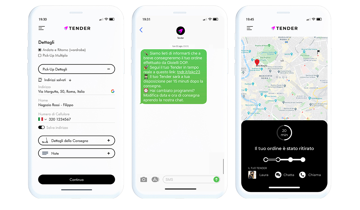 «Statistically, 50% of e-commerce users, even the most hardened, abandon the 'shopping cart' and do not confirm a purchase due to lengthy delivery times, which on average is around three working days. So, we set out to find alternative formulas, and began to imagine how the in-store and online shopping experience might evolve, starting with home delivery,» says Filippo Maria Capitanio. «Tender is built on three pillars. First of all, a premium service, which consists of guaranteeing home deliveries 7 days a week, from 10 a.m. to 10 p.m., by appointment, within an hour of purchase confirmation, either on the same day or whenever is suitable for you. And that's not all. Deliveries are made by our Personal Style Riders, highly qualified staff who bring the Brand Experience right to your doorstep. Our riders have specific training, an interest in the sector, know the product they are delivering, speak one or more foreign languages and are true "bearers" of a certain brand's values. Through the app and the link sent as the delivery gets underway, the end customer knows exactly who will be knocking at his door. He will immediately receive the rider’s photo and phone number so that he can contact him and follow the live tracking on the map. The third and final pillar is sustainability: all our vehicles are zero-emission. We have an intermodal approach, using our own fleet of electric vehicles but also taking advantage of public transport and all existing sharing services. We offer a BtoB, store to store, warehouse or store to end customer service and, for returns, an end customer to point of departure service. Tender is not a BtoC app. That needs to be specified, although an extra area that we are developing very well is for and with celebrities. These people tend to move a large volume of goods and usually it is the store manager who takes care of the delivery directly to their homes or to the set. Thanks to Tender, now every brand can deliver clothes and jewelry safely. We are currently operative in Rome, Milan, and in the next months in Florence and Cagliari.»