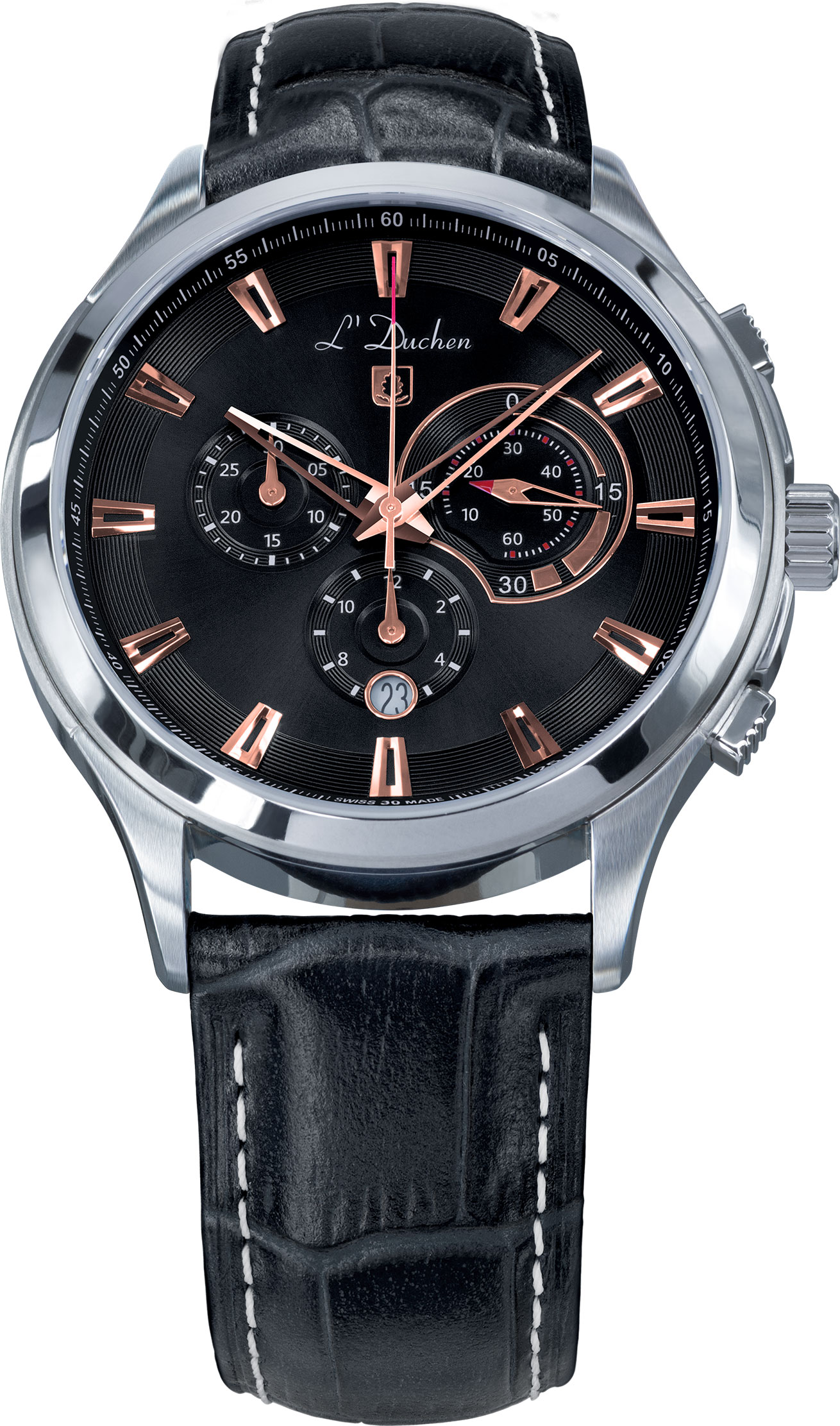 Timeless style meets decisive dynamism in the new L'Duchen Pilotage Chronograph. A charismatic watch immediately recognizable from the big 316L stainless steel case with a 43,5mm diameter. The watch celebrates its spirit of flight, as the chronograph counters are designed as a dash-board of a vintage airplane. Sun-ray polished and guilloche parts are elaborately combined on dial, resembling rotating biplane propeller. The watch is available in 6 different colours: trendy blue, versatile grey and, of course, classical black are among them. Bold and adventurous yet exceptionally stylish and refined, the L'Duchen Pilotage Chronograph is a masculine watch designed for decisive gentlemen.